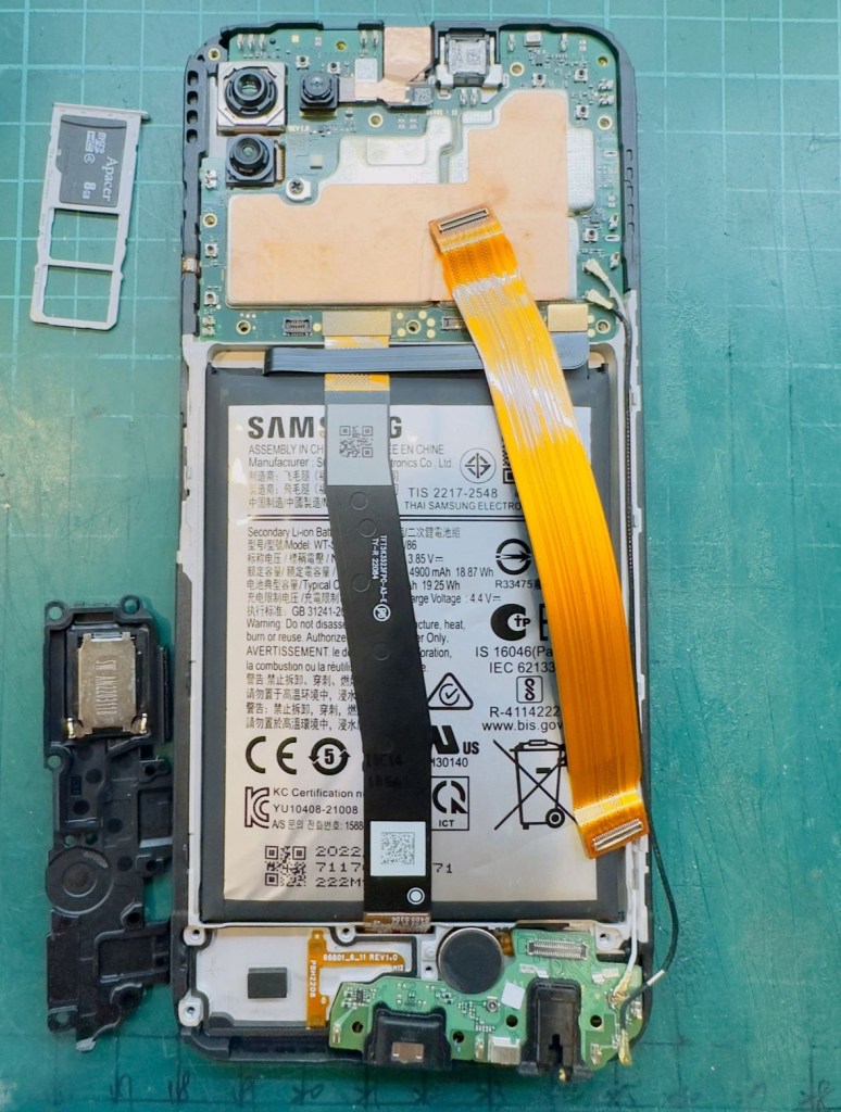 一位客戶的三星A22手機突然無法充電,經過我們的檢測,發現是摔機造成充電孔內部排座損壞。我們迅速更換了新的充電模組,手機恢復正常,維修費用:1400元。
