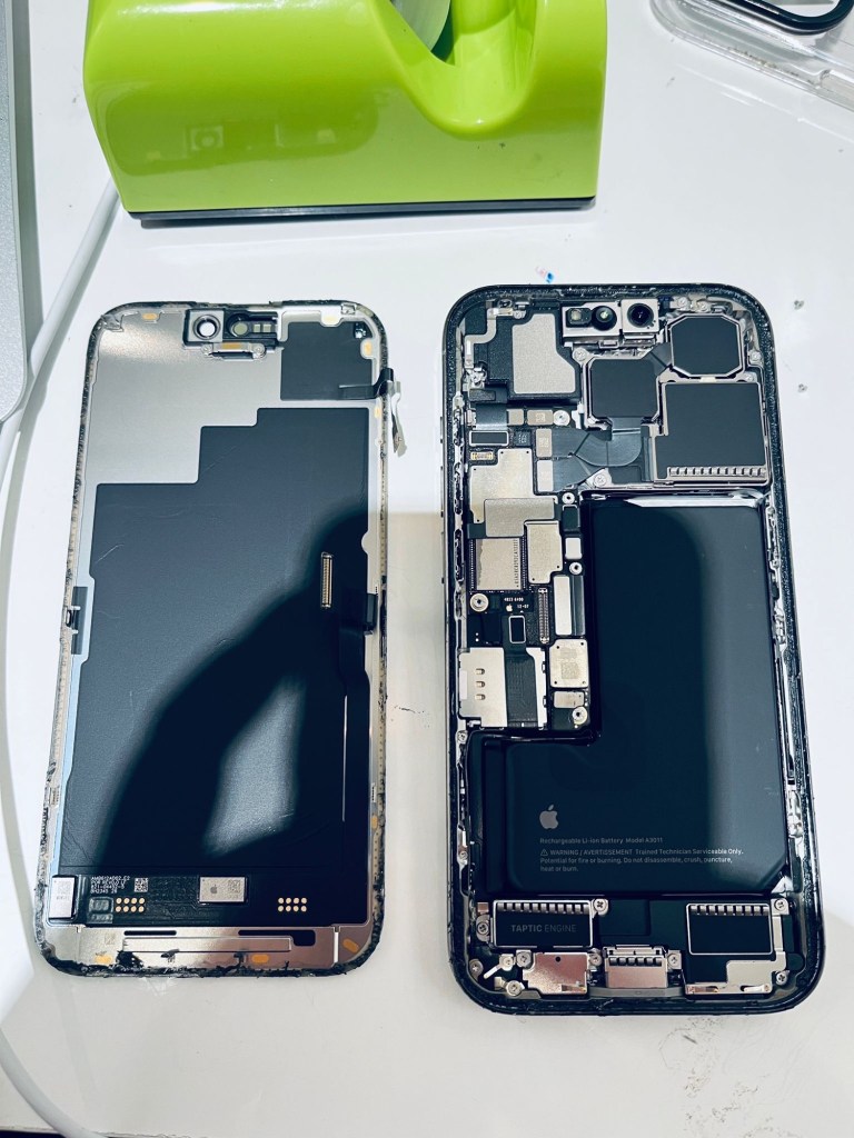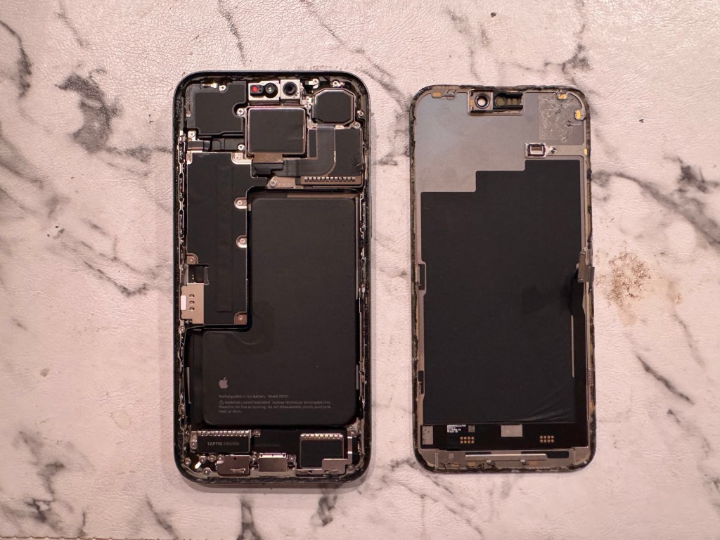 另一位客戶的iPhone 14 Pro Max因遭到重物擠壓,導致螢幕和中框都損壞。我們提供了全面的螢幕和中框更換服務,確保手機的結構完整性與美觀,維修價格:13000元。(螢幕+中框)