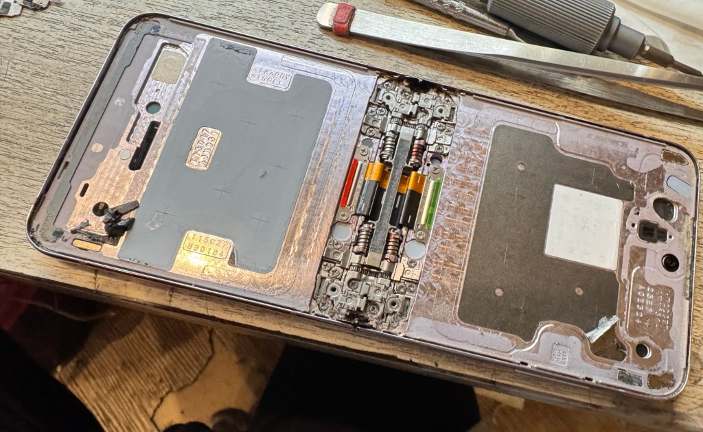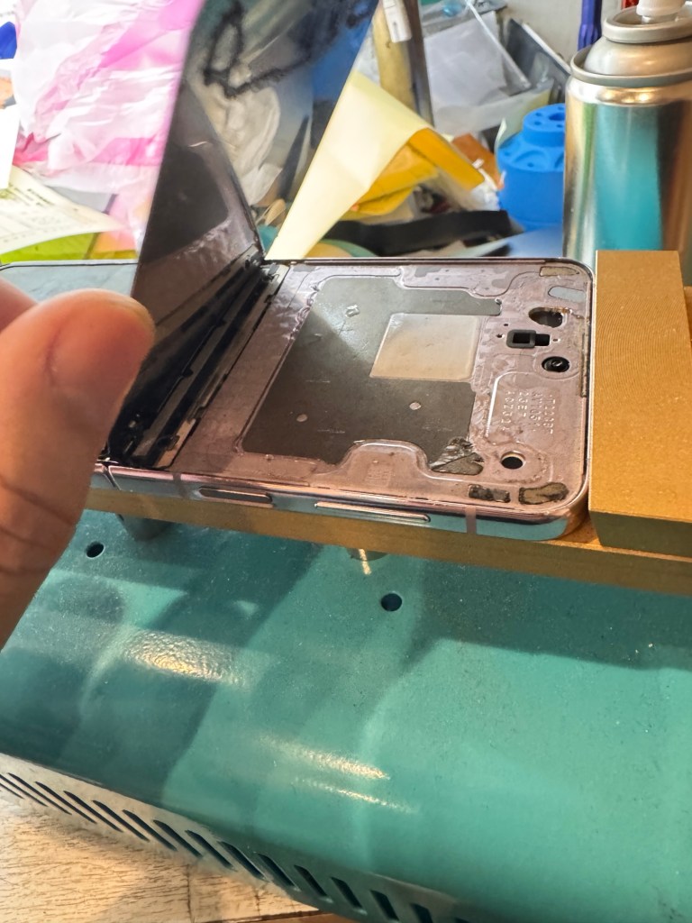 一位客戶的三星 Z Flip 5 因雨中摔落導致轉軸排線損壞,手機無法正常開合。我們更換了轉軸排線,並進行全面檢測,確保手機功能恢復正常,維修費用:5000元。