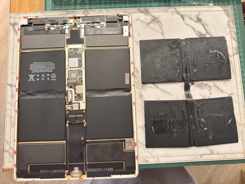 一位中和的學生,iPad mini 6整台泡入水中,無法充電且耗電極快。我們拆機後發現充電埠嚴重腐蝕,電池也已短路。我們執行了「主機板超聲波深度清洗」、「更換充電排線模組」及「大容量電池」,成功救回所有資料,讓iPad重獲新生。