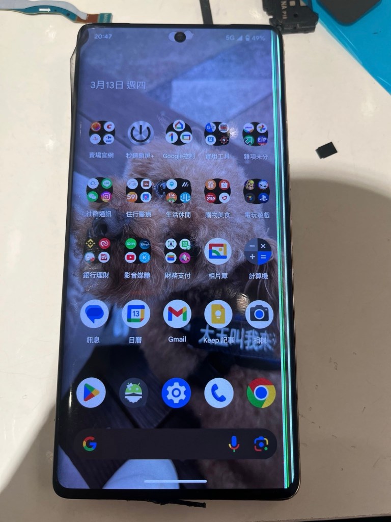 - 診斷: 內嵌螢幕排線與觸控晶片因撞擊受損。